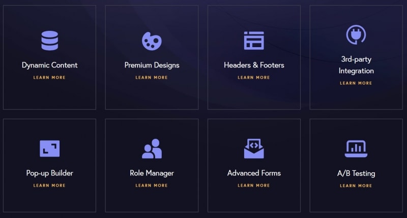 Brizy的模块调用可以说几乎是各个编辑器中最方便的了,即使是免费版本可以使用的模块都非常多,而且设计都非常现代,非常适合快速构建页面