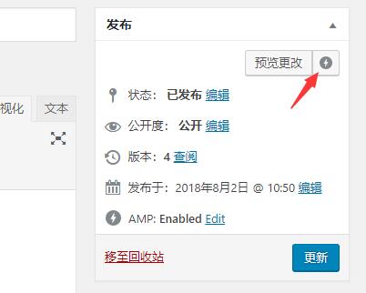 安装好插件之后,会自动开启AMP文章,当我们想要查看AMP效果时,只需要点击发布旁边的AMP闪电图标就会预览AMP网页。如果担心不符合AMP规定的话,可以将源码拷贝到AMP检测工具中进行验证,如果现实PASS表示网页符合AMP