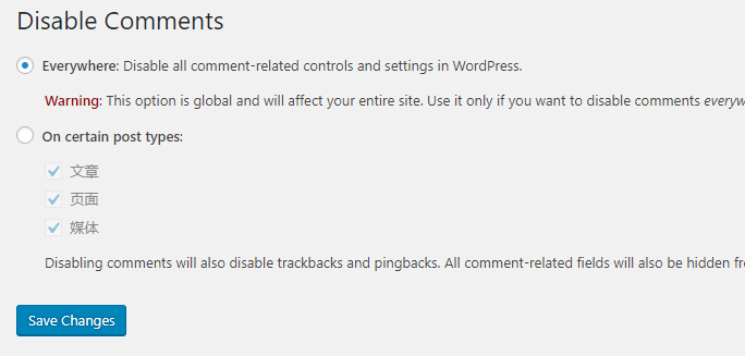 其中包括文章、页面、媒体等评论功能,还可以针对特定类型