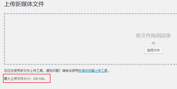 修改完该项后,你会发现WordPress后台已经变成了200M的限制,但是上传大文件时会发现又出现HTTP错误,其实我们还没有修改完毕,还有一个很重要的nginx没有配置