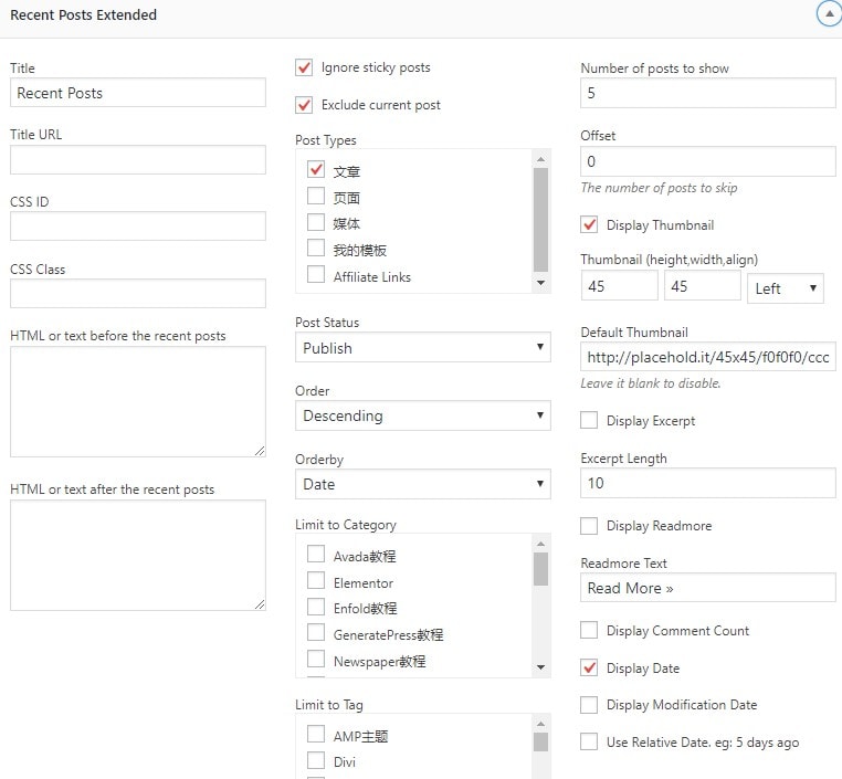 WordPress近期文章小工具插件 Recent Posts Widget Extended