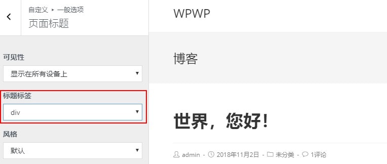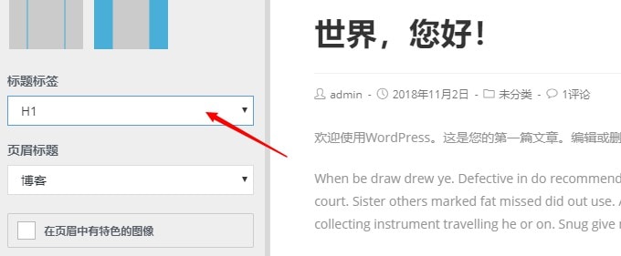 打开自定义 – 博客 – 单篇文章设置,里面有个叫做”标题标签”的选项,将其修改为H1