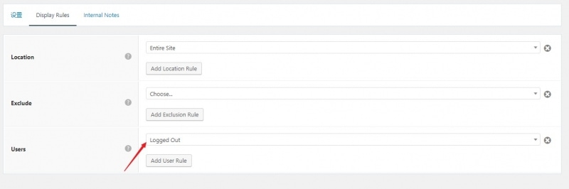 最后我们需要注意的一点就是修改一条 Display Rules,Users选项改为 Logged Out,意思就是只针对没有登陆的用户使用这段代码,这样管理员就不会被加入到统计系统了