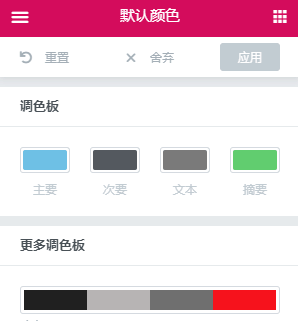 Elementor中的调色板允许你设置一些默认的颜色,包括主要、次要、文本、摘要,这些都是会应用在Elementor小工具中的,他们会影响到整个网站的颜色