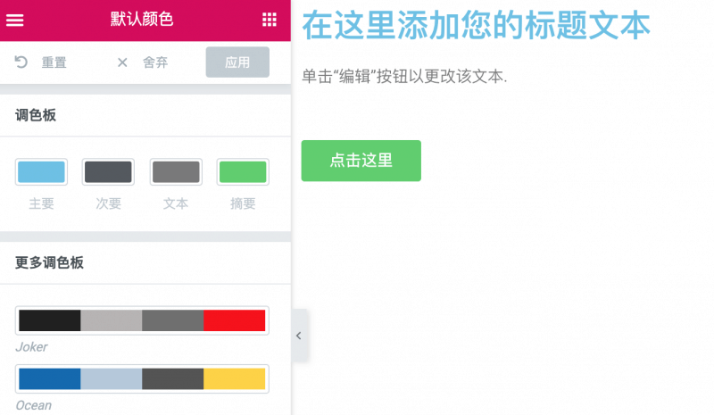 默认颜色其实可以理解为一个配色方案,当我们在Elementor中添加一些元素时,默认都会带有一些颜色,比如蓝色的标题、黑色的正文、绿色的按钮等,这些其实都是由默认配色方案主导的