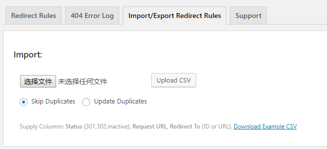 如果你的历史文章比较多,还可以使用插件导入功能,从表格中批量导入重定向规则