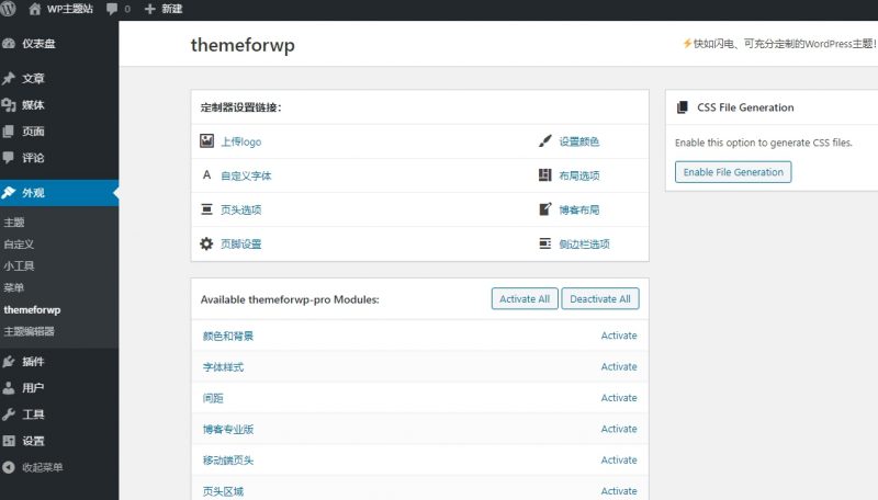 然后你就可以看到所有可以设置的选项,主要是主题和插件相关的设置,包括相关的描述、主题缩略图、作者链接、激活码等,全部可以设置为自己的品牌