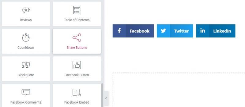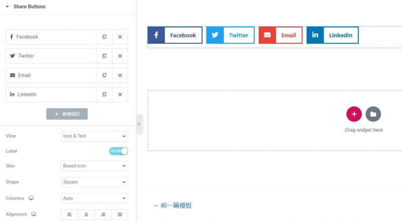 然后找到 Share Buttons,将其拖拽到编辑区域