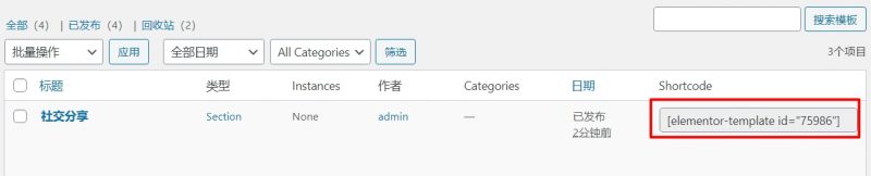 然后发布并保存,到 Templates 列表中获取短代码(Shortcode)