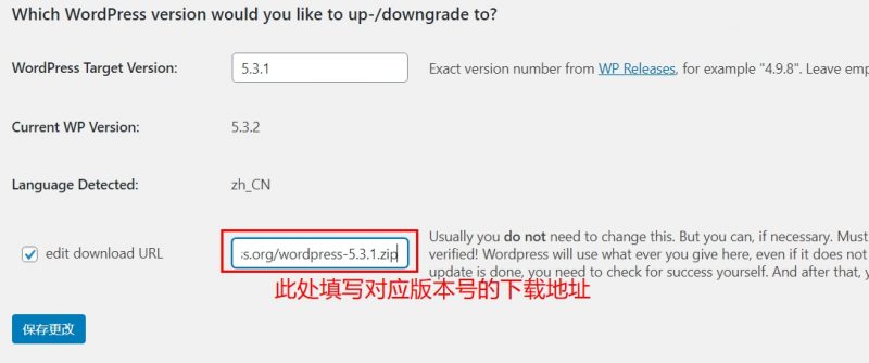 选好版本后点击保存更改,不过对于中文版WordPress,还需要一点调整
