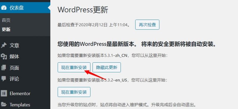 然后保存更改,回到更新界面,选择上面一个 现在重新安装