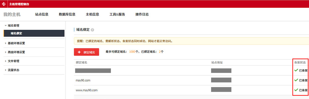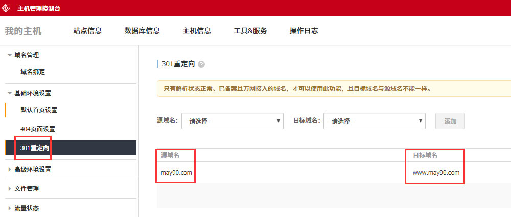 只有解析状态正常、已备案且万网接入的域名,才可以使用此功能,而且要注意:目标域名与源域名不能一样。