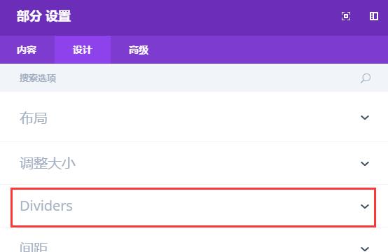 在使用之前,先说下 dividers 的位置,它在Section部分的设计选项中,不管是常规、特色、全宽的部分都能看到该选项